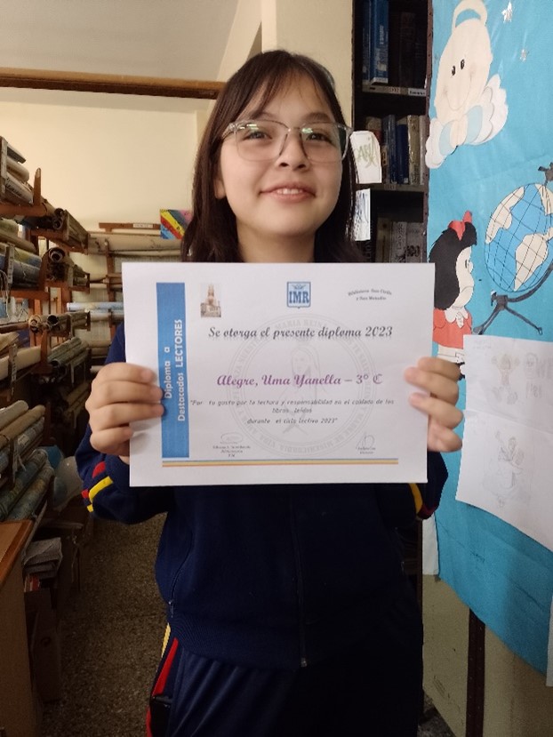 ACTIVIDADES – Nivel Secundario – Concursos – Talleres ACTIVIDADES – Nivel Secundario – Concursos – Talleres MENCIONES – Secundaria ITMR Ayudante de Biblioteca y lectoras destacadas MENCIONES – Secundaria IMR Ayudante de Biblioteca y Lectoras destacadas Diploma a lectora destacada